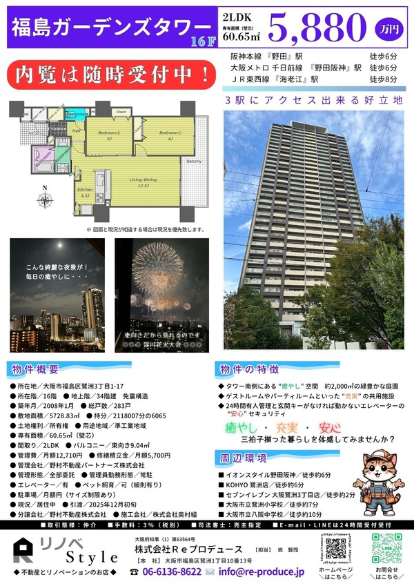 - 福島ガーデンズタワーの斜め前が弊社です(徒歩30秒)お気軽にお問い合わせください♪