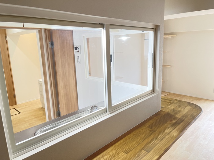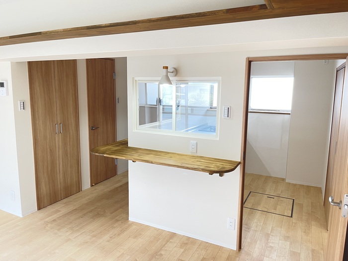 - 室内窓を設けることにより、キッチンからリビングが見えます(室内窓は引違い戸を採用)