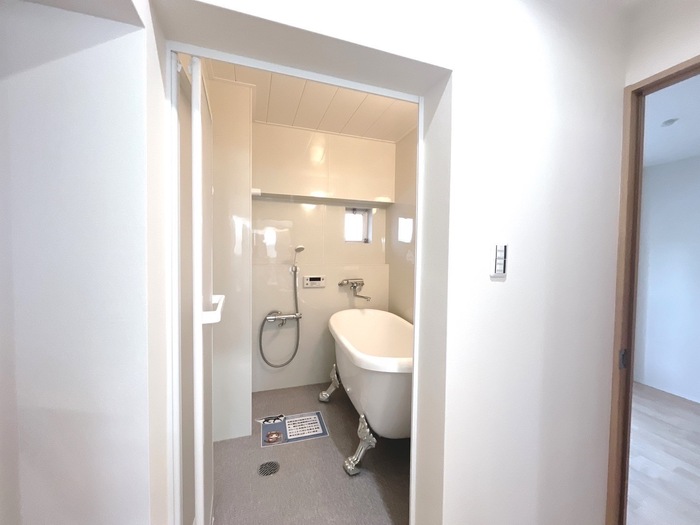 - 猫ちゃんにちなんで浴槽も猫足バスタブを採用!