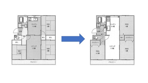 キッチンとリビングの壁を解体して、お部屋を広くします キッチンの位置を変更します(風通しが良くなるのと、採光をより良くする為)